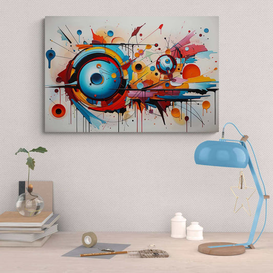 Dynamic Graffiti Sphere Canvas Wall Art | Abstract Spherical Explosion with Colorful Splashes