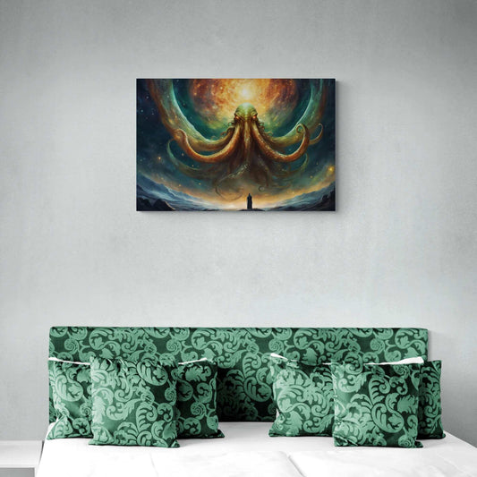 Cthulhu's Witness: Lovecraftian Night Sky Horror Canvas Wall Art