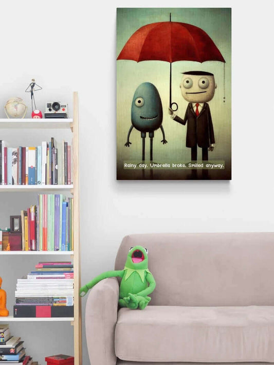 Smiling Through the Rain: Whimsical Canvas Wall Art with Positive 6-Word Story