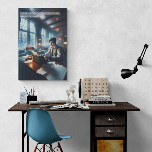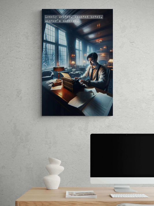 Winter's Haunt: 6-Word Story Canvas Wall Art about Lonely Writer in a Snowy Manor
