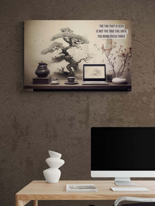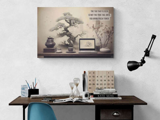 Asian-Inspired Canvas Wall Art with Bonsai & Clever Haiku