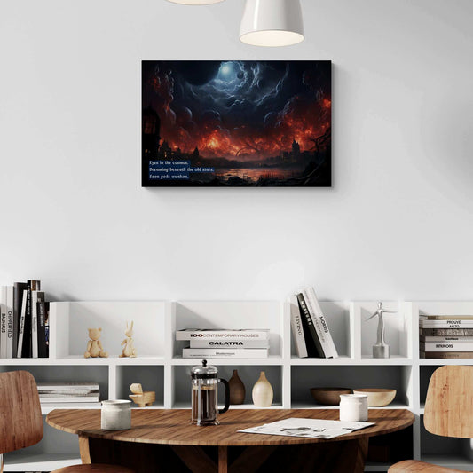 Cosmic Horror Awakening: Lovecraftian Apocalypse with Disturbing Haiku Canvas Wall Art