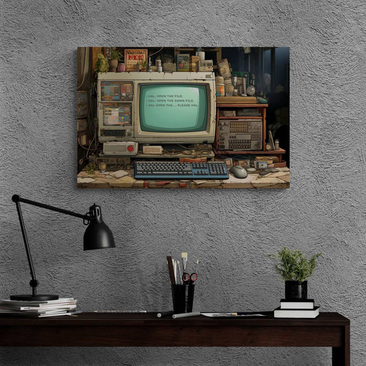 File Not Found: Nostalgic Anime Style Canvas Wall Art with Dystopian Tech Haiku