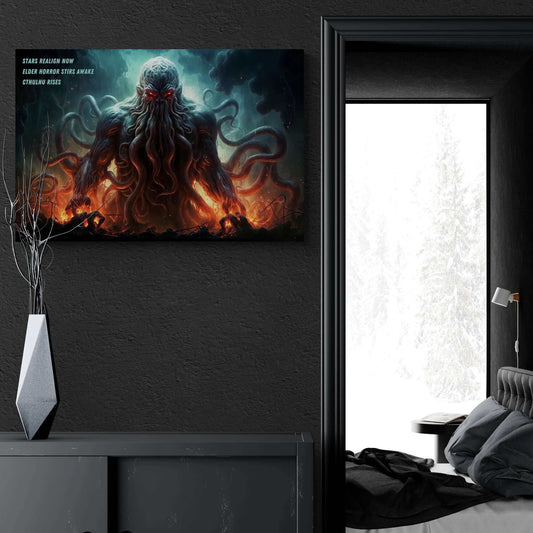 Cthulhu Rises Canvas Wall Art, Inspired by Chilling Haiku