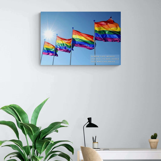 Bold Rainbow Flags Canvas Wall Art, Inspired by Celebratory Haiku - Pride Month Art Print