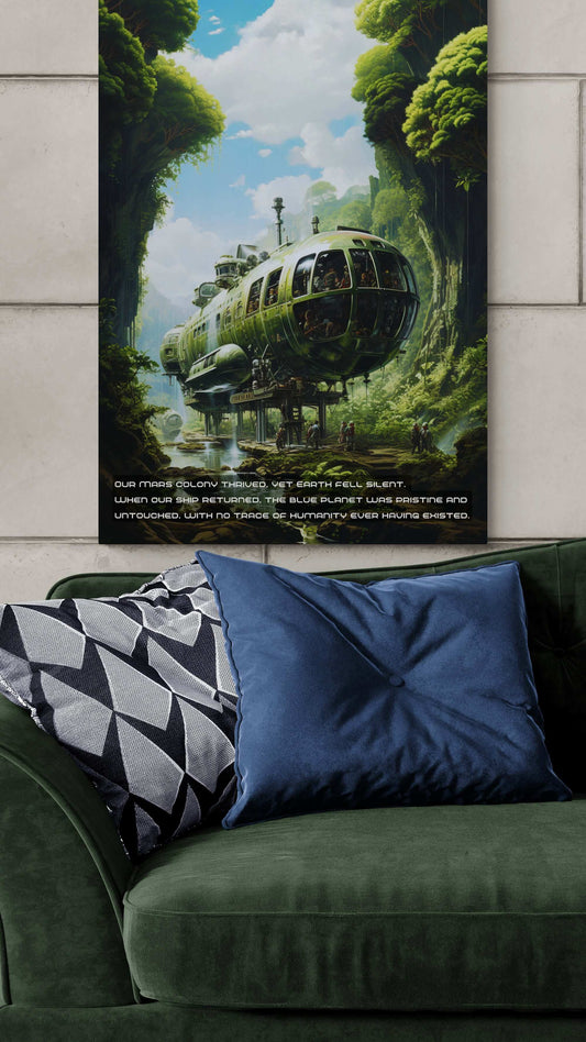 Return to Silence: Sci-Fi Spaceship Canvas Wall Art with Poignant 2-Sentence Story
